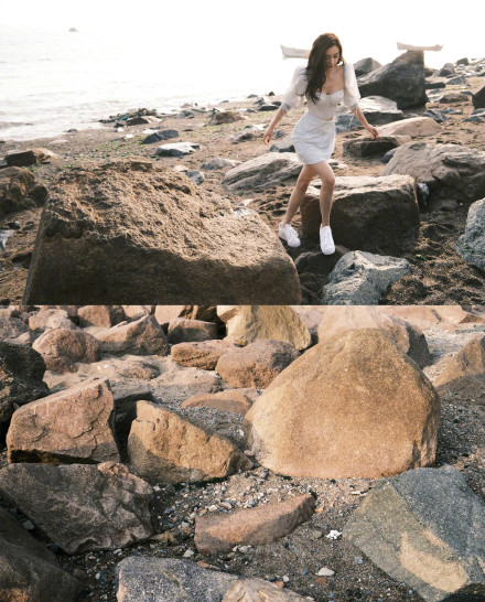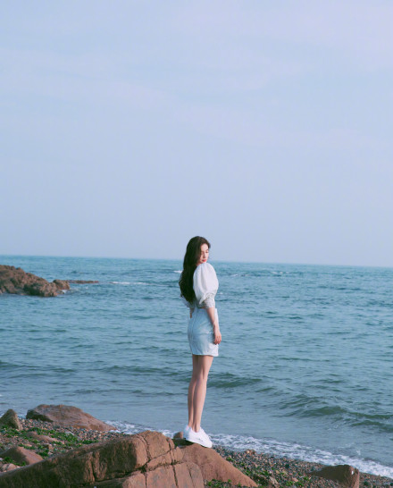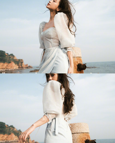 Angelababy磁力:Angelababy海边漫步 穿泡泡袖纱裙优雅似公主 Angelababy写真